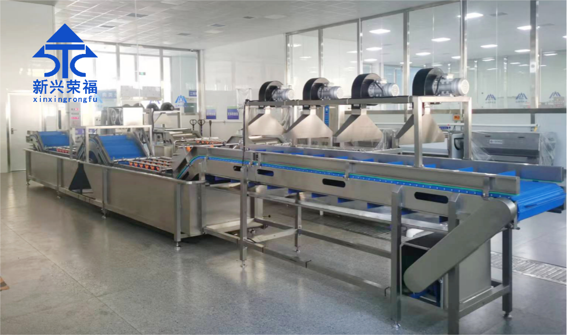 該項目采用的新興榮福蔬菜清洗線設(shè)備,包括含有六工位挑選輸送機、多功能切菜機、快速拆裝型提升機、水流式渦輪清洗機(高缸)、水流式渦輪清洗機(低缸)、震動瀝水機等。